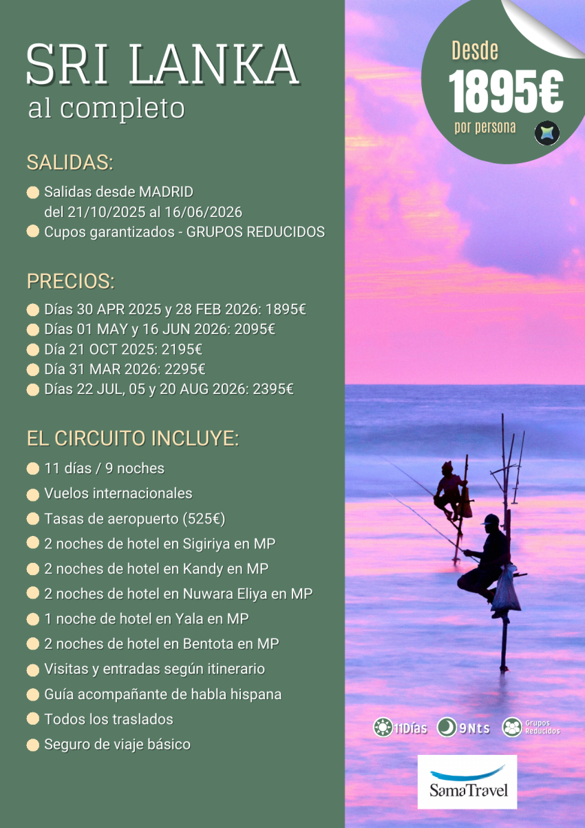 "SRI LANKA al Completo": circuito 11 días - cupos garantizados desde madrid (JAN-AUG) **desde 2.095€**